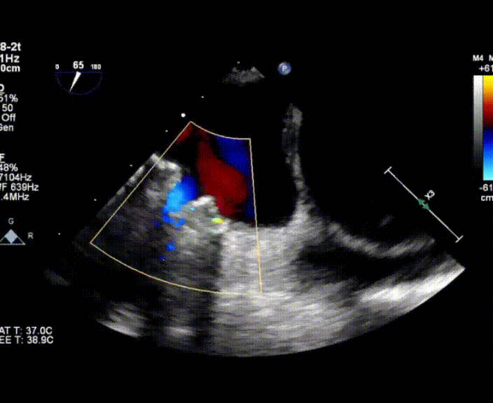 術中首先在局麻下穿刺股動脈、股靜脈,完成心導管檢查評估后轉為全麻,在食道超聲引導下穿刺房間隔,穿刺成功后將加硬導絲送入左上肺靜脈建立軌道,根據患者病情行球囊預擴張后植入6mm孔徑房間隔造孔支架,經透視及食道超聲評估支架左右盤展開良好,夾持于房間隔兩側,固定穩(wěn)定、位置良好,食道彩超顯示房水平右向左為主分流,分流孔直徑符合預期大小,心導管檢查評估達到預期效果,釋放造孔支架。術后12h患者下床活動,恢復順利,擬于近日完善術后評估后出院。