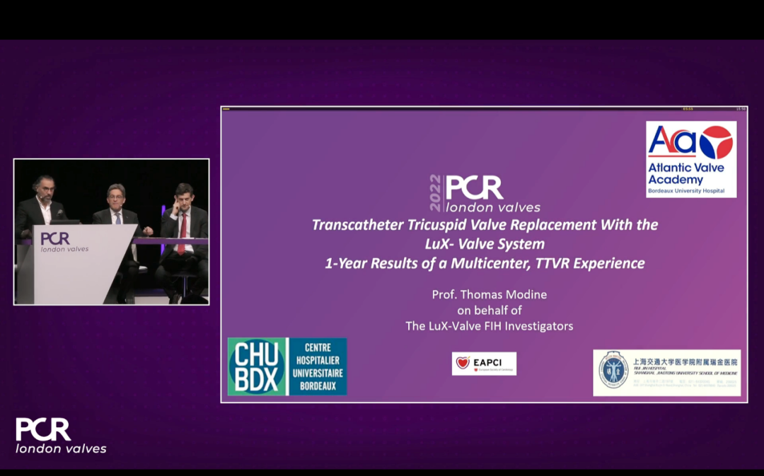 在本次大會上,法國波爾多大學(xué)醫(yī)院Thomas Modine教授公布了LuX-Valve FIM一年臨床數(shù)據(jù),并線上指導(dǎo)德國Mainz中心Ralph Stephan von Bardeleben教授進行了其所在中心的LuX-Valve Plus首例植入。在亮眼的臨床數(shù)據(jù)與精彩的手術(shù)實踐結(jié)合中,與會專家充分感受到了三尖瓣介入領(lǐng)域中國原創(chuàng)器械的魅力。