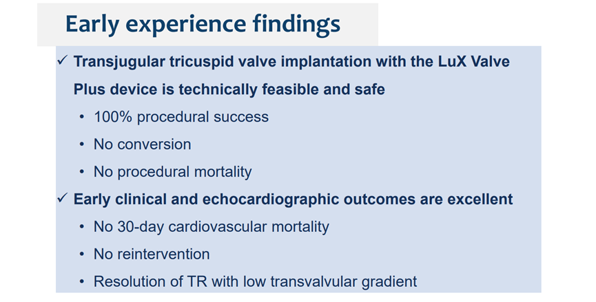 從研究結果可以看出,LuX-Valve Plus經導管三尖瓣置換系統是安全、有效的,是三尖瓣介入治療領域的重要選擇之一。