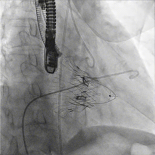 接受手術的為一名80歲男性,因“心悸2年,氣喘伴下肢水腫半年”入院。超聲心動提示“極重度三尖瓣反流,右房及右室明顯擴大,右心收縮功能輕度減低,左心收縮功能正常,肺動脈壓力正常”。患者同時合并有“持續性房顫”及“慢性心力衰竭”,病史持續2年,規律口服抗凝及強心、利尿治療治療效果不佳,癥狀持續。經廈心心臟團隊評估后,認為患者三尖瓣極重度反流并伴有心衰表現,長期內科藥物治療效果不佳,且患者高齡、外科手術風險高,因此決定采用微創經頸靜脈LuX-Valve Plus三尖瓣置換系統為患者治療。